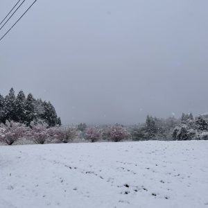 昨夜、未明から暴風雨が激しく、明け方には雪もチラついていましたが、まだ花は散らずに満開を迎えています。