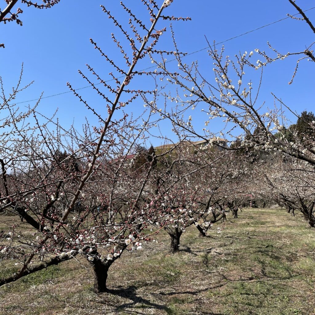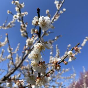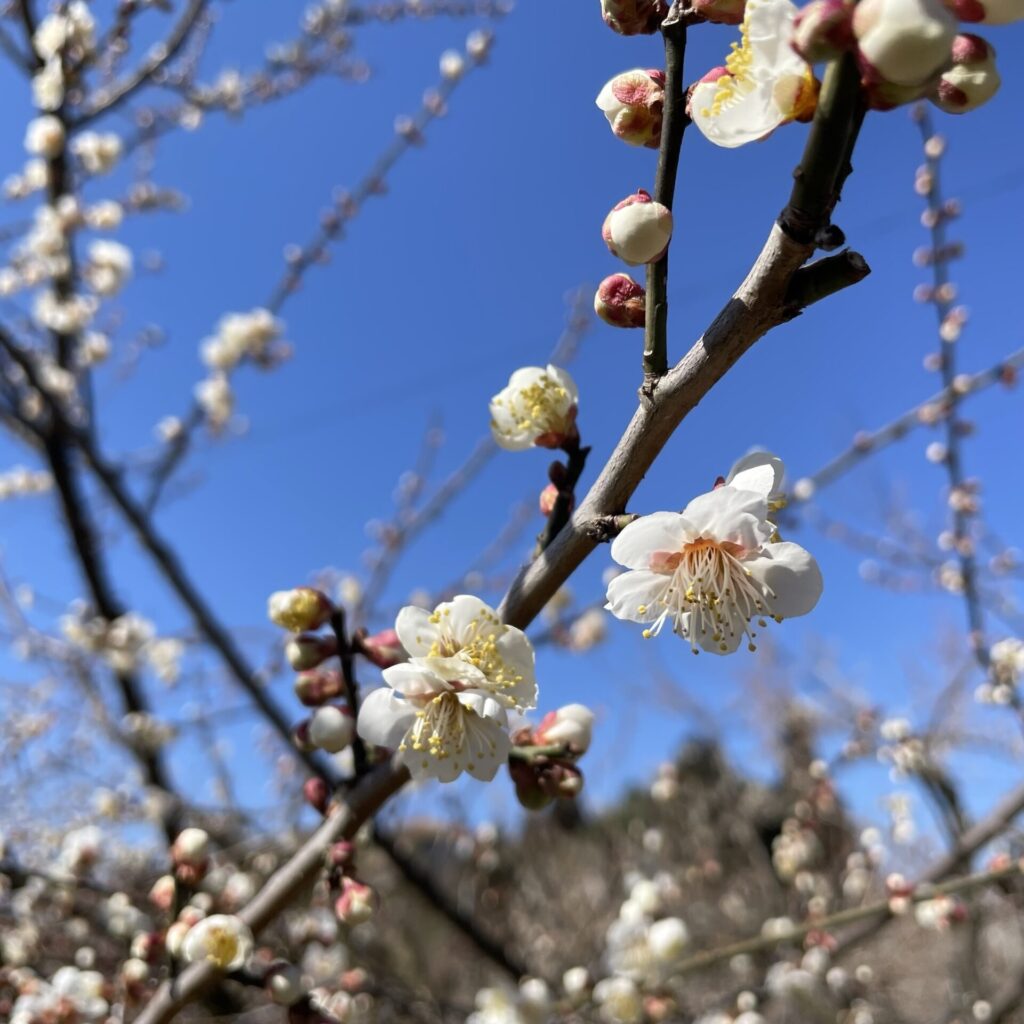好天が続き梅の花も咲き始めました、現在2分咲きと言ったところでしょうか、ミツバチもせわしなく働いています